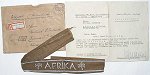 The award of the AFRIKA cuffband was accompanied by an award document, or "Besitzzeugnis". In some cases, such as prisoners of war, this is all that was received. A portion of these latter cases were actually received through Red Cross mail while the recipient was in a POW camp in either the US, Canada or England. Like most award documents, the document for the AFRIKA cuffband was issued in a variety of formats. However, while none are easily available today for collectors, at least four styles will be encountered. These range in style from the plain text message format - the most scarce of the three - written on half sheets of paper, regulation formatted but completely unit typed, to the more formal, preprinted documents, with or without the image of a palm tree - the former being the most desirable and the latter being the most common version.