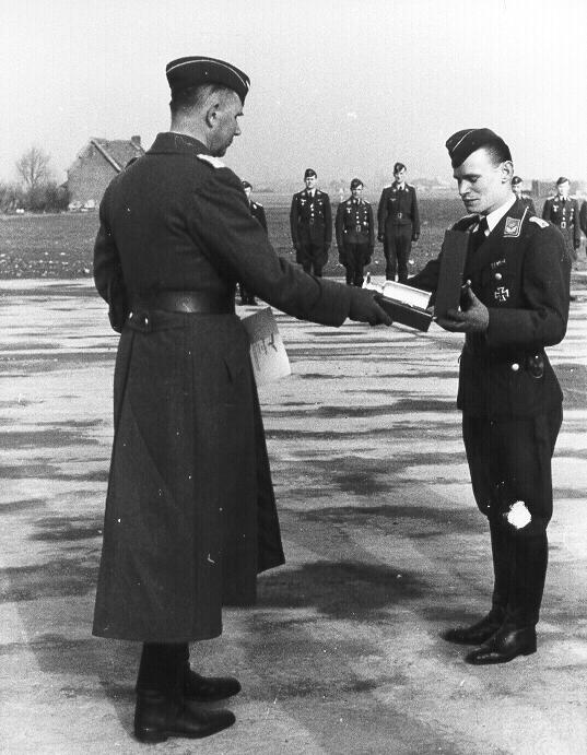 The recipient of the complete document pictured above was German Cross winner Günter Bach, a pilot in KG3. Note the characteristic typed details .... rank, name, type of flyer