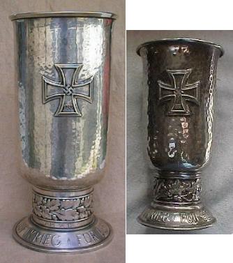Perhaps of greater concern to collectors, however, is the so-called "up-graded" Honor Goblet. With these forgeries, the original recipient's name is erased and replaced with that of someone deemed to be more 'famous', for example, a noted Ritterkreuztrager. One of the authors has identified two examples which may have been enhanced in this way. Photographs, however, can not be published. If you see a goblet for sale purporting to be that of a 'famous' airman examine it very carefully.